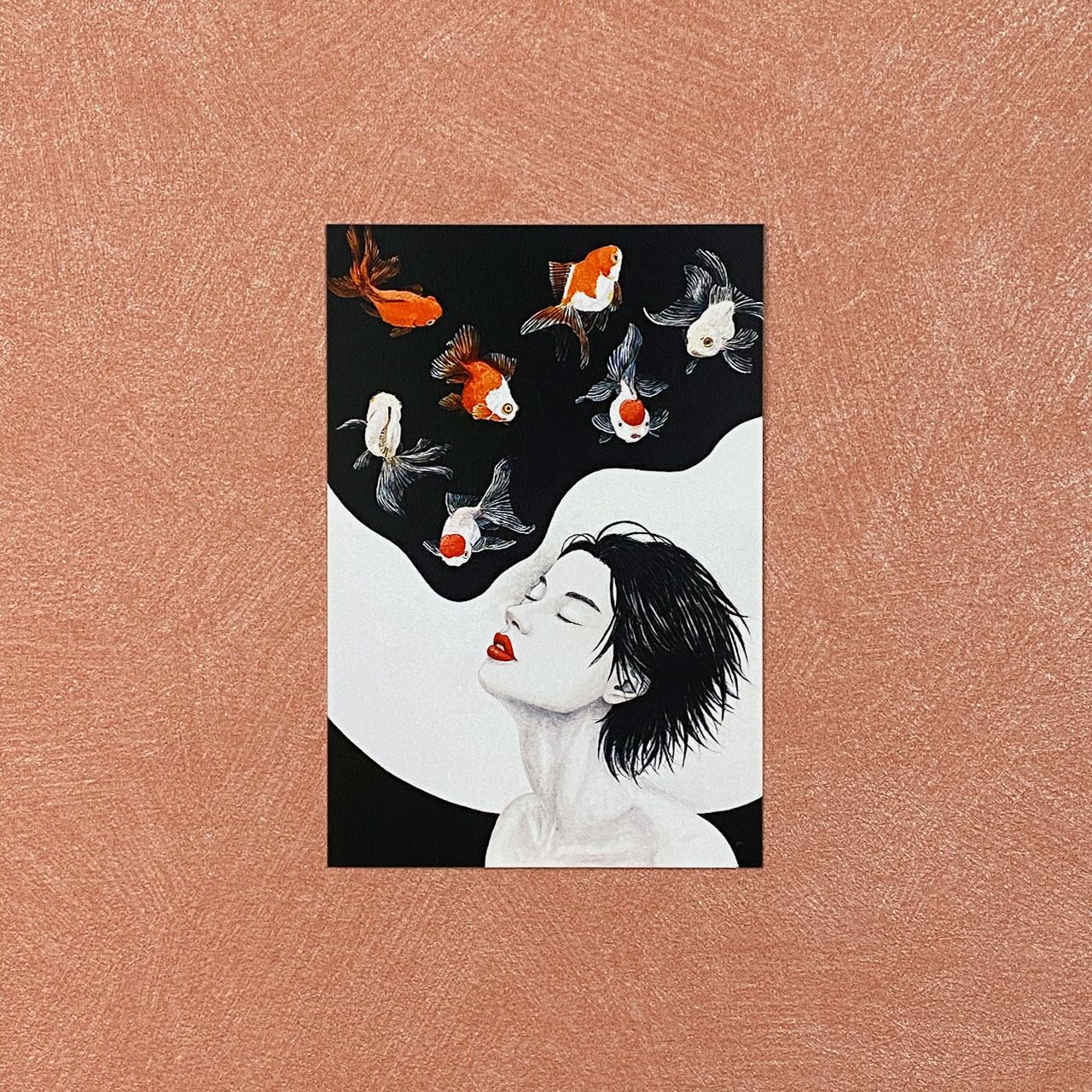 絶滅危惧種に指定されているリュウキン、丹頂という金魚を描きました。